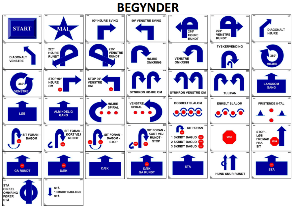 Der er selvfølelig meget mere end vi kan beskrive her, har du fået lyst til at læse mere om reglerne, se beskrivelser af hvordan øvelserne skal udføres, så har DKK en rigtig god side, der er links til det hele også til videoer, der viser øvelserne. Tryk på Rally Lydighed neden for og du kommer til DKK’s side.