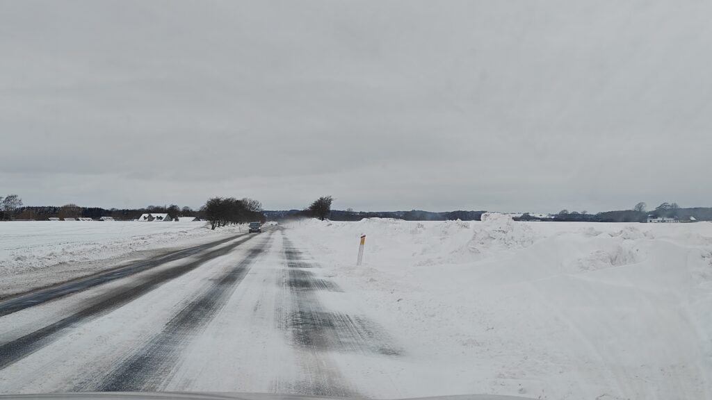 Det havde sneet op til denne prøve og vi kørte afsted i god tid.